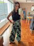 Palazo de crepé estampado con pretina ancha estilo high rise.
