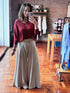 Palazo estilo falda pantalón de chompera waffle beige con elástico trasero y botón y cierre delantero. Talla única M-L.