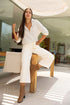 Pantalón estilo cropped de denim blanco con botones delanteros dorados.