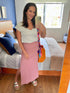 Falda Midi Pencil de rib delgado con elástico en la cintura y abertura a un costado.