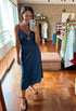 Vestido de jean chambray licrado con cut out y aro en escote.