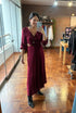 Vestido de tela Viena con detalle recortado en cintura y escote en V con bobo.