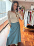 Polo a rayas de canalé licrado manga 3/4 con escote cavado redondo en espalda.