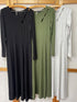 Maxi vestido manga larga de algodón viscosa con detalle cut out en hombro.